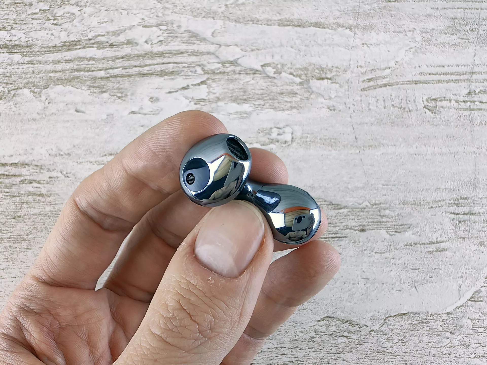 Начнем с того, что дизайн наушников обновлён полностью, подобных моделей в линейке у Huawei ещё не было. Когда впервые видишь FreeBuds 5, почему-то в голове всплывает образ терминатора из жидкой стали. Наушники как будто вытекают из уха, что выглядит необычно и достаточно молодежно.