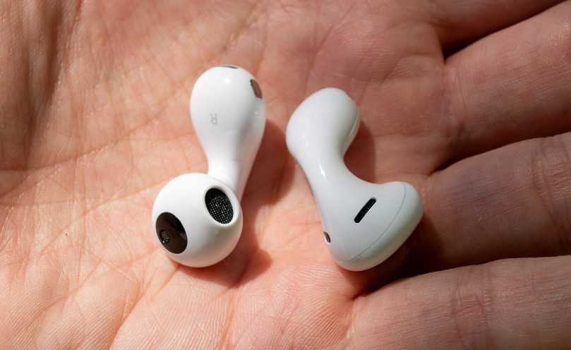 Несмотря на оригинальную форму, проблемы у FreeBuds 5 те же, что и у большинства других вкладышей. Они скользкие и могут ненадёжно сидеть в ушах, поэтому от чувства, будто наушники вот‑вот выпадут, отделаться сложно.