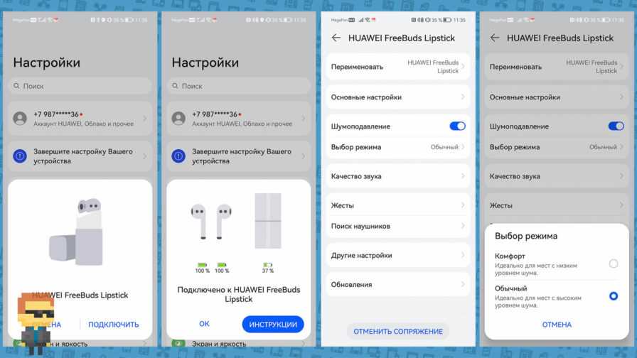 Сопрягаем наушники с телефоном по Bluetooth. FreeBuds Lipstick поддерживают свежую версию Bluetooth Bluetooth 5.2.