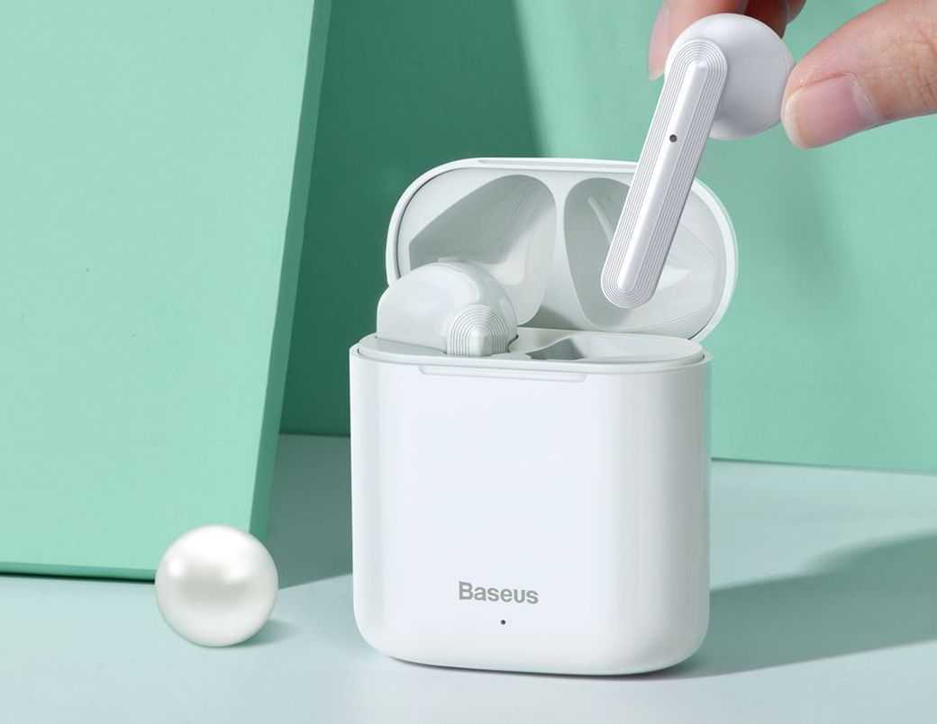 Внешний вид Baseus W09 очень напоминает по форме наушники Apple AirPods, но я не могу сказать, что модель является точной копией.
