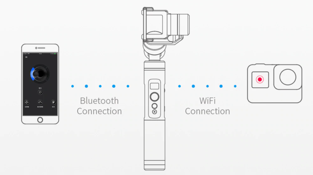 Данные модели полностью синхронизируются со стабилизатором и смартфоном по схеме на рисунке.