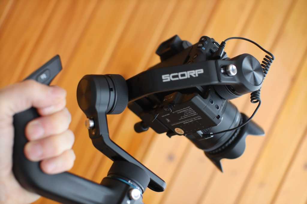Scorp Mini держит отлично беззеркальную камеру с 50мм, 40мм объективами, но может не иметь места для балансировки камеры с длинным объективом. Мы тестировали также 3-осевой стабилизатор, установив на них беззеркальную камеру с объективом 30мм и объективом 24-85 мм.