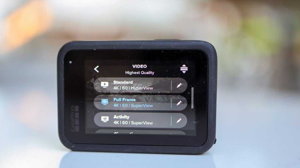 Hero 11 Mini можно подключить к приложению GoPro Quik на устройстве Android или iOS, где можно детально настроить параметры. На самом устройстве кнопки питания и записи используются для навигации по различным меню, которые отображаются на крошечном верхнем ЖК-дисплее. Этот дисплей действительно впечатляет своим качеством и удобочитаемостью, и после небольшой практики я смог легко изменять различные режимы и настройки, используя только две кнопки.