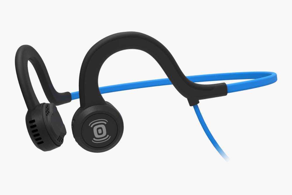 Предназначенная для занятий спортом. Имеет влагозащиту. Однако не является полностью беспроводной, так как два «уха» соединяет провод. Также имеют заушную петлю за счет которой не спадают даже при активных занятиях.