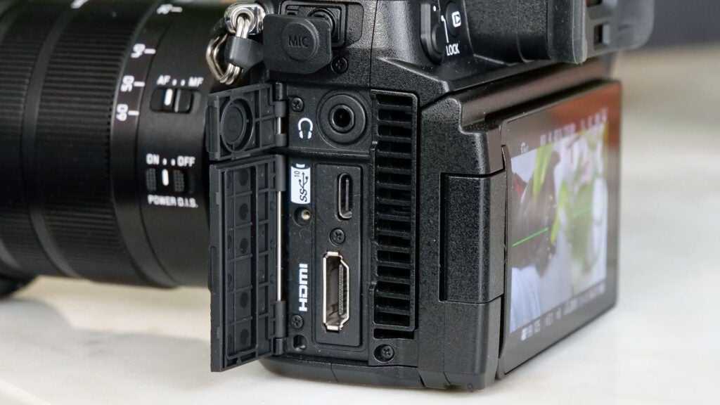 Как и следовало ожидать от видеокамеры, здесь есть специальные разъемы для наушников и микрофона, а также полноразмерный выход HDMI для внешнего мониторинга и записи. HDMI здесь может передавать видео до 10-бит C4K 4: 2: 2 со скоростью 60 кадров в секунду на внешний рекордер, в то время как будущее обновление прошивки позволит камере USB-C (который в настоящее время работает для передачи данных 10 Гбит / с, зарядки аккумулятора и питания). целей) для записи непосредственно на внешний SSD.