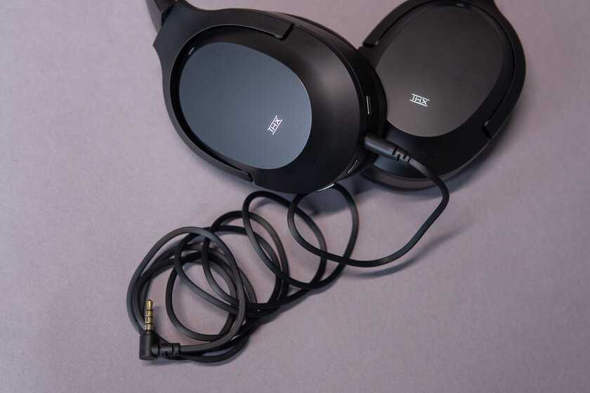 В качестве альтернативы Bluetooth к правой чашке можно подключить AUX. Штатный 1,5-метровый кабель получил Г-образный штекер и необычную прорезиненную оплётку с насечками вдоль всей длины. В проводном режиме доступно шумоподавление, достаточно включить электронику гарнитуры.