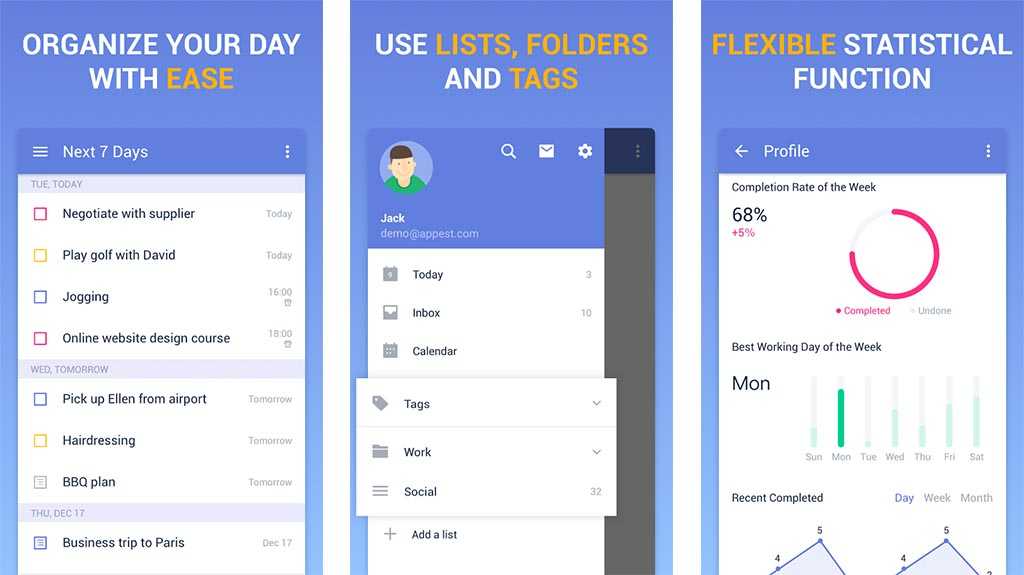 Несколько важных особенностей – поддержка разных операционных систем (установить приложение можно на смартфон с Android или айфон), удобное управление, быстрое добавление и перемещение задач. Кроме того, в бесплатном приложении нет ни рекламы, ни платного контента.