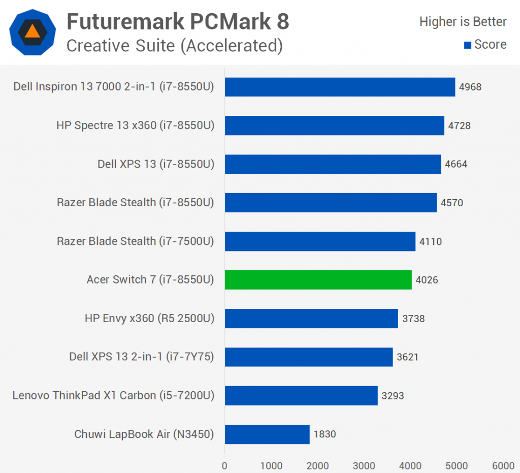 Субъективно, Acer Switch 7 холоднее ультрабуков с активными системами (Dell/Xiaomi сваливаются из-за 80 градусов на процессоре через 7-15 минут), показывая сопоставимую производительность.