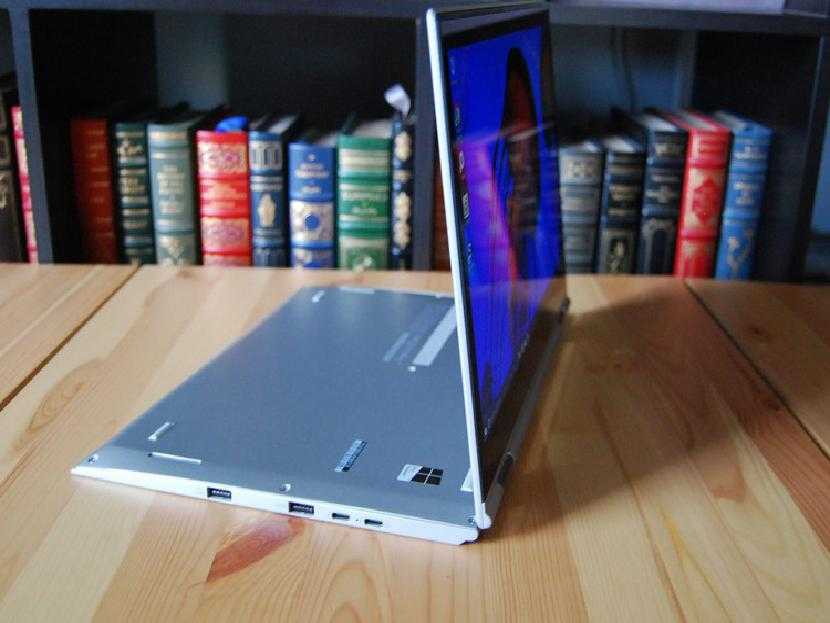 Рамка вокруг дисплея невелика, и наверху достаточно места для веб-камеры 720p. Я бы сказал, что достаточно лицевой панели, чтобы удобно держать устройство в режиме планшета. Одна вещь, которая заметна, когда в режиме планшета, это приподнятый горб, к которому прикреплены петли. Планшет не совсем плоский, но приподнятая часть не мешает — это скорее эстетическая проблема.