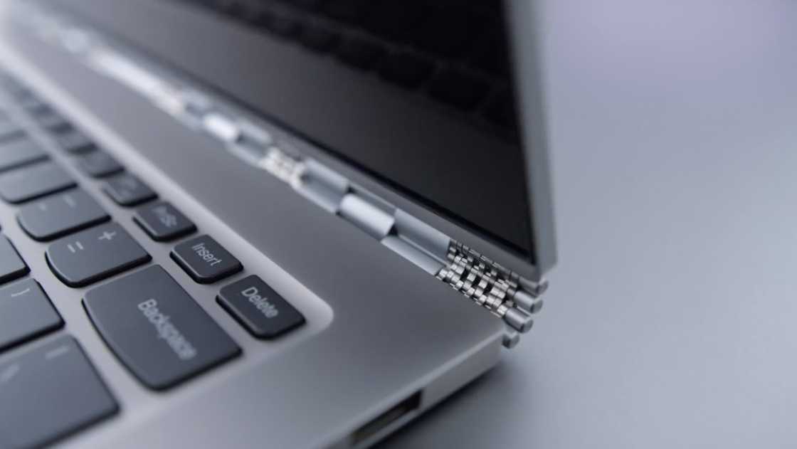 Клавиатура и сенсорный экран Yoga 920 (14 ″) скреплены между собой гладким шарниром ремешка для часов Lenovo. Благодаря этой петле вы можете наклонить дисплей вперед или сложить, чтобы превратить устройство в планшет. В режиме ноутбука практически нет колебаний экрана при вводе.