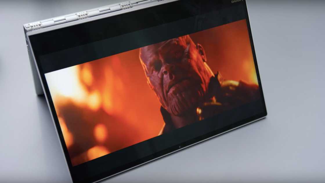 The display bezel of this Lenovo Yoga 920 is strikingly thin. The maker has fitted the webcam back at the top of the real estate area where it should be.
