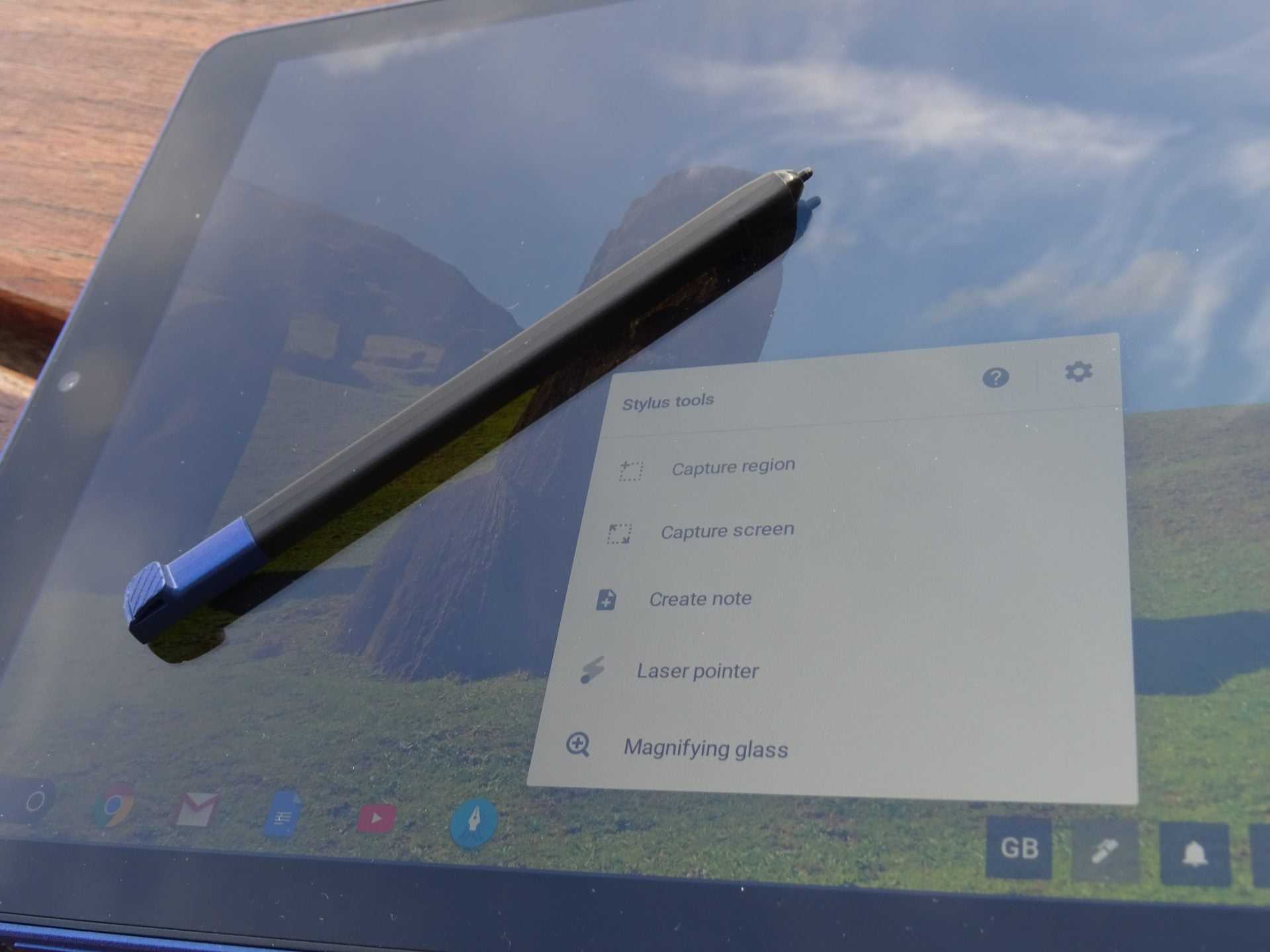 Если Chromebook Tab 10 удерживается в альбомной ориентации, то стилусу легче взять, независимо от того, как вы качаетесь.