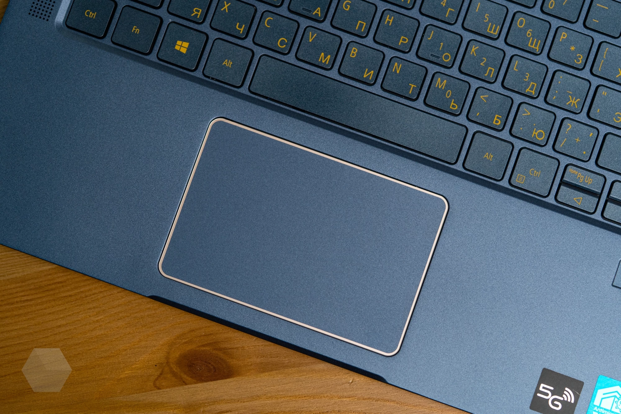 В работе к клавиатуре не возникло никаких претензий: тихий ход, практически безошибочный «слепой» ввод, множество функциональных клавиш. Если пользоваться Pg Up / Pd Down, то впечатление не такое положительное, всё же размеры клавиш субъективно маловаты для комфортного использования. Сенсорная панель среднего размера расположена по центру корпуса. Она имеет гладкое, пусть и не стеклянное, покрытие, позволяющее пальцам легко скользить по ней.