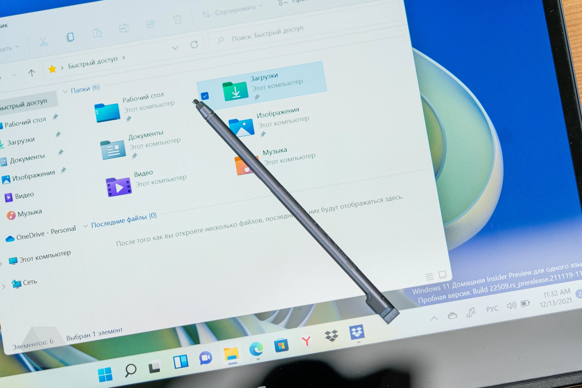 Справа под клавиатурой расположен малоприметный, но важный элемент — датчик биометрической аутентификации по отпечатку пальца. Такой способ разблокировки гораздо удобнее пароля, можно сказать, что и безопаснее, ведь пароль при желании можно подглядеть. По скорости и точности работы сканера всё на хорошем уровне, а вот с позиции эргономики он бы лучше смотрелся на боковой панели рядом с удачно вписанной кнопкой включения, в режиме планшета доступ к сканеру будет не таким быстрым. Кстати, разблокировка по лицу в тестовой модели недоступна.