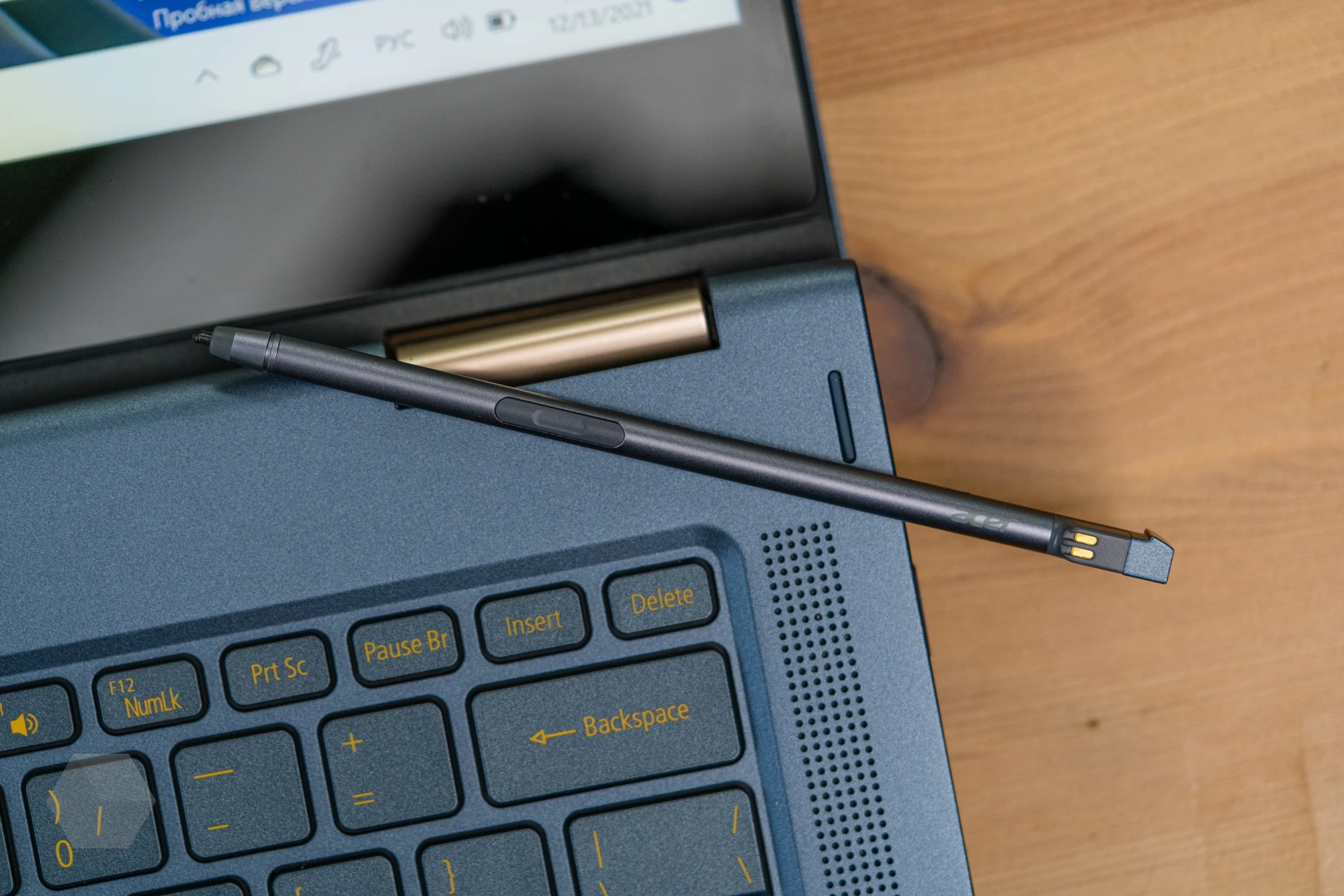 К тому же, благодаря контактам на верхней части корпуса стилуса, внутри он ещё и заряжается: 100 минут на полтора часа работы и 90 минут работы после 5 минут зарядки. Поддерживается 4096 уровней нажатия, технология Wacom AES 1.0 делает его совместимым со многими сенсорными экранами, на корпусе — две кнопки для управления вводом, вес в 4 грамма, практичное и современное дополнение к лэптопу — впечатления от имплементации очень позитивные.