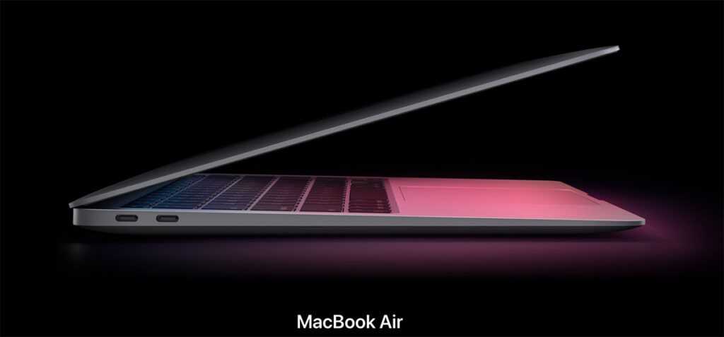 А для тех, кто ценит абсолютную тишину, станет приятным сюрпризом отсутствие вентилятора в MacBook Air на базе чипа M1 Apple Silicon. Но тут, конечно же, есть и свои нюансы. Тишина и отсутствие лишнего энергопотребления, вследствие отказа от вентилятора могут сказываться на работе ноутбука под нагрузкой. Производительность будет снижаться при нагрев устройства, в отличие от моделей с вентиляторным охлаждением. Речь идет про Mac Mini или новый 13-дюймовый MacBook Pro.