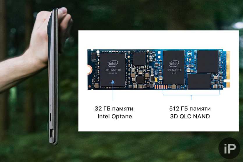 Одна из опций хранилища устроена по технологии скоростного чтения и записи данных, которая объединяет два вида памяти: традиционная флеш память и сделанная по секретной технологии Intel Optane.