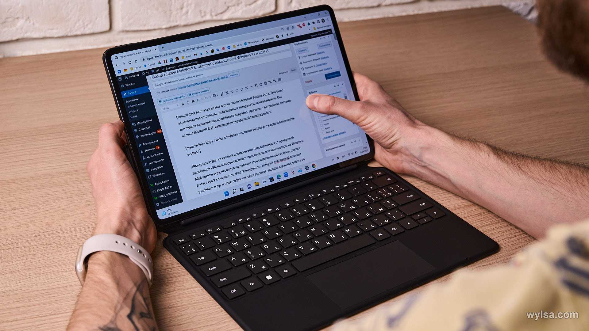 MateBook E — немаленькое устройство: 306 × 215 × 146 мм при весе 709 граммов.