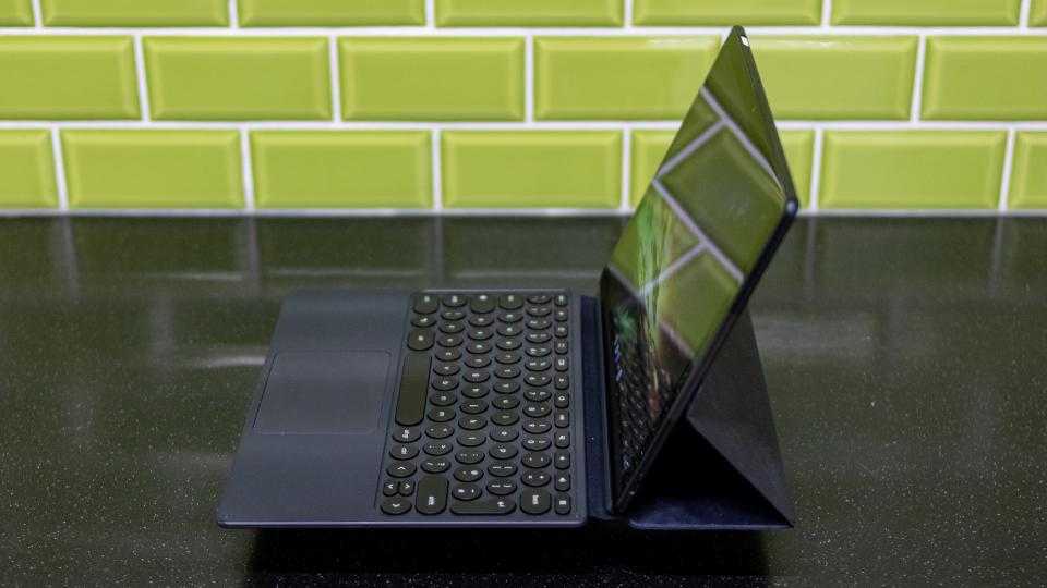 Тем не менее, этого должно быть достаточно для большинства целей и при повседневном использовании, я обнаружил, что клавиатура отлично подходит для печати. Круглые клавиши могут показаться странными, но я предпочитаю их клавишам на iPad Pro, и я обнаружил, что быстро набрал нормальную скорость набора текста. Тачпад под клавиатурой тоже работает хорошо. Он реагирует на жесты, имеет положительный щелчок и прекрасно чувствует себя под пальцем.