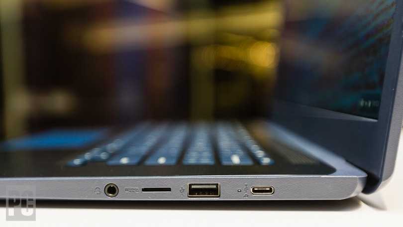 Этот край дублирует порты слева, добавляя разъем для наушников и слот для карты microSD. Четыре USB-порта и слот для флеш-карты — исключительно щедрое дополнение ввода / вывода для ноутбука, такого недорогого. Беспроводные соединения включают в себя 802.11ac Wi-Fi и Bluetooth 4.2.