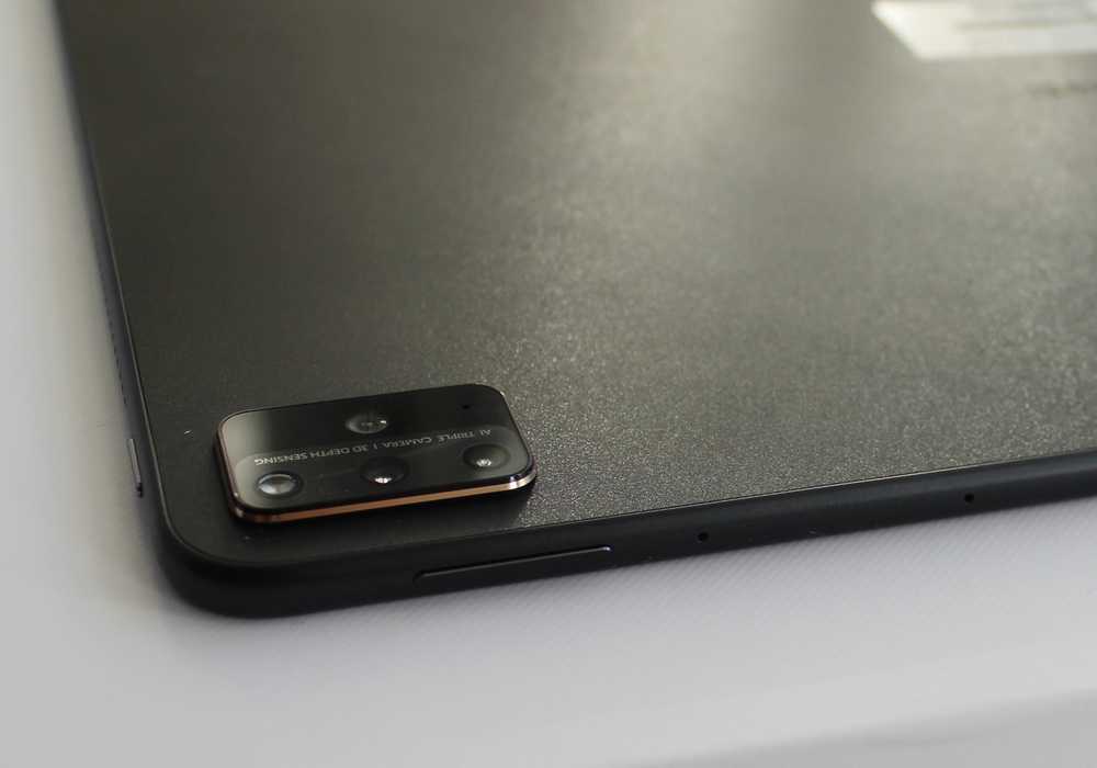 В правом верхнем углу находится блок из двух камер, 3D-датчика и вспышки. Они незначительно выпирают из тонкого корпуса (всего 6,5 мм), потому если положить планшет без чехла на ровную поверхность, при нажатия на экран будут «покачивания».