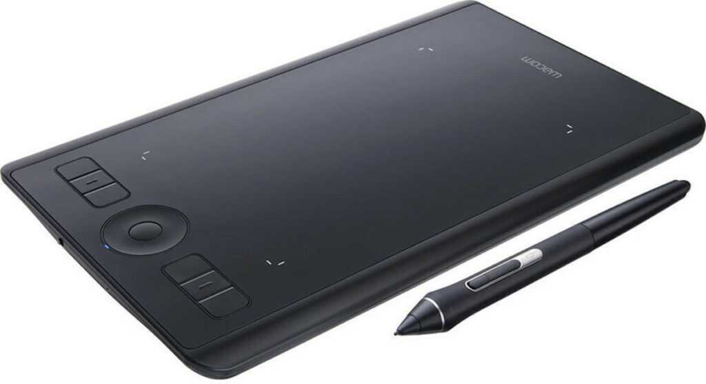 Фирма Wacom давно известна на рынке, оборудование производителя ценится у художников по всему миру. В случае с Wacom Intuos Pro S PTH-460 — это небольшой планшет с размером экрана в 6,4 дюйма (рабочая область 160 x 100 мм) и отличным качеством сборки. Габариты составляют всего 269 x 170 x 8 мм, а вес 450 г. При этом, возможности для работы с графикой вполне профессиональные, соблюдается «золотой стандарт» 5080 LPI, уровень давления 8192. Дополнительно оснащен кнопками управления на задней панели. Скромные размеры делают гаджет весьма мобильным, что позволяет творить в любом удобном месте.
