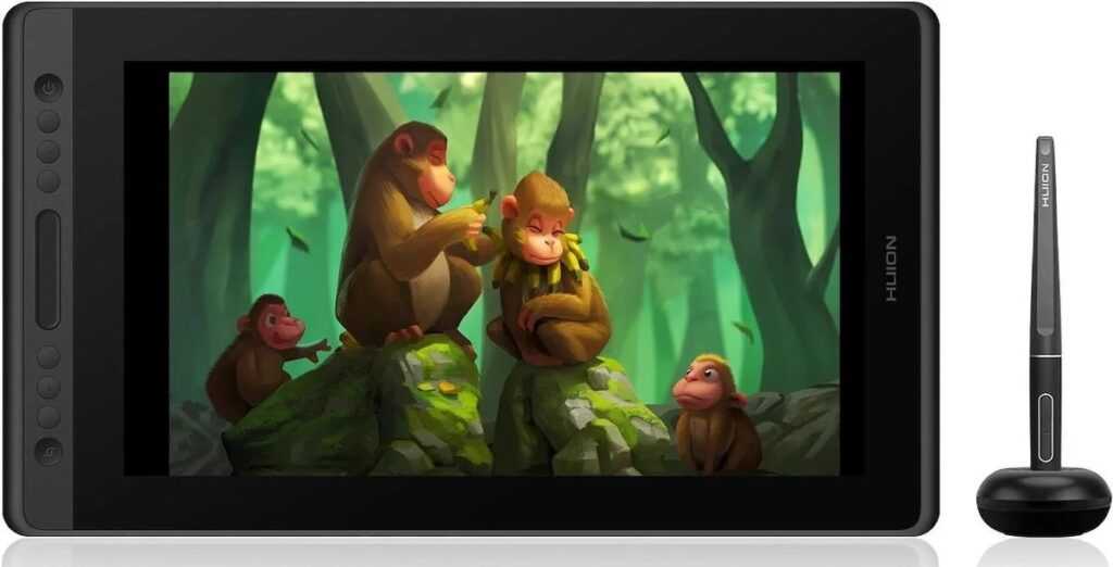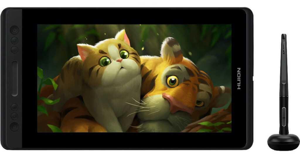 Флагманская версия линейки небольших 13-дюймовых планшетов HUION, которая отлично зарекомендовала себя в среднем ценовом диапазоне. Как и в предыдущем случае, имеет качественный IPS дисплей, поддерживающий 5080 LPI, перо PW507, работающее без подзарядки батареи. Отличается компактным размером в 388 х 219 х 11 мм, легким весом 910 грамм. Также, как и более премиальные устройства имеет видео вход HDMI, 4 функциональных кнопки и Touch Bar.