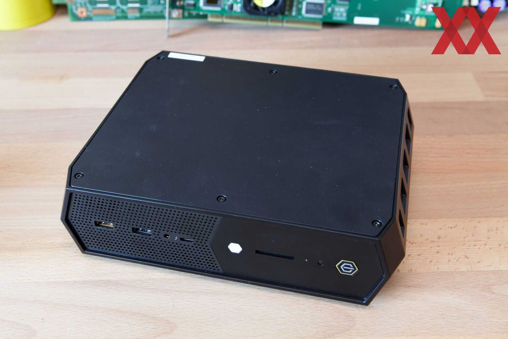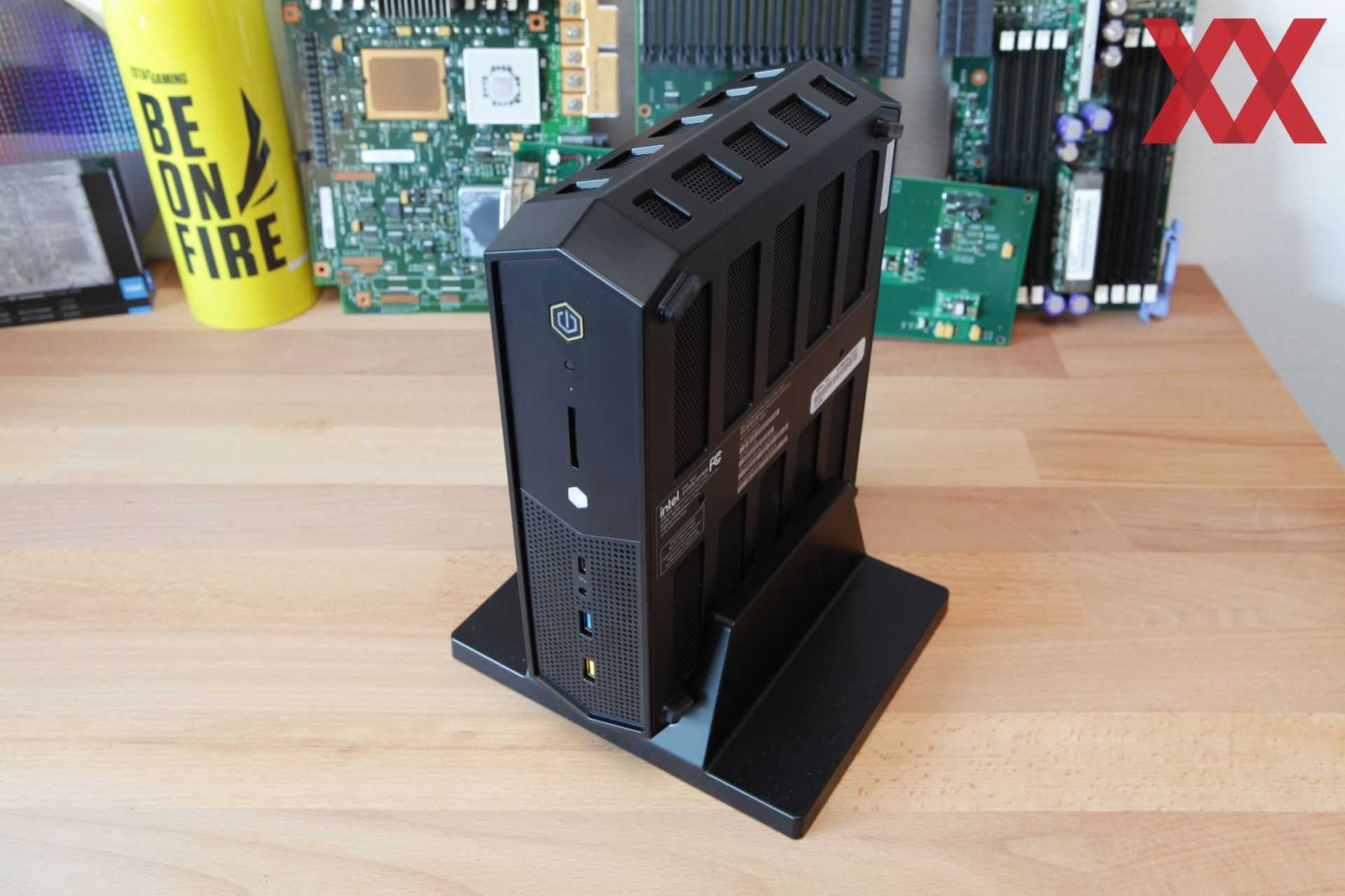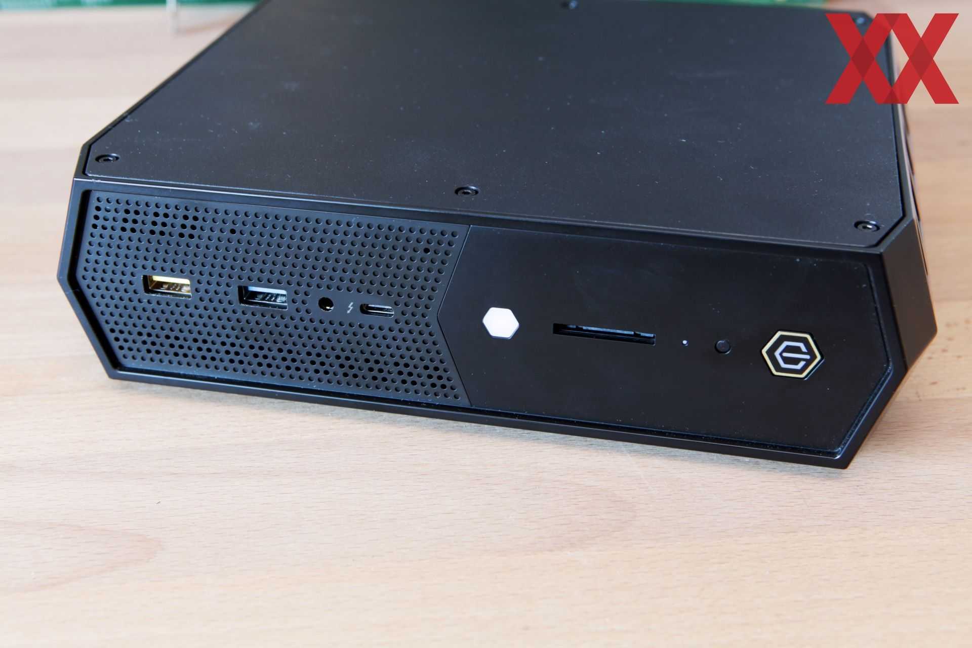 Модельный ряд разделен на 3 класса: Performance (производительный компьютер для дома и офиса), Enthusiast (игровой домашний ПК, изображен на фото выше), Pro (коммерческое, профессиональнре и встраиваемое решение). Стоит отметить, что версия Enthusiast содержит внутри себя дискретную видеокарту NVIDIA RTX 20-й серии, что напрочь рушит все мифы о слабости подобных малогабаритных решений. Портов на корпусе предостаточно: USB 3.1 Gen2 2x Type-C, 3x Type-A, 2.5 Gigabit Ethernet, HDMI 2.0a, MiniDP 1.4, DP 1.4.