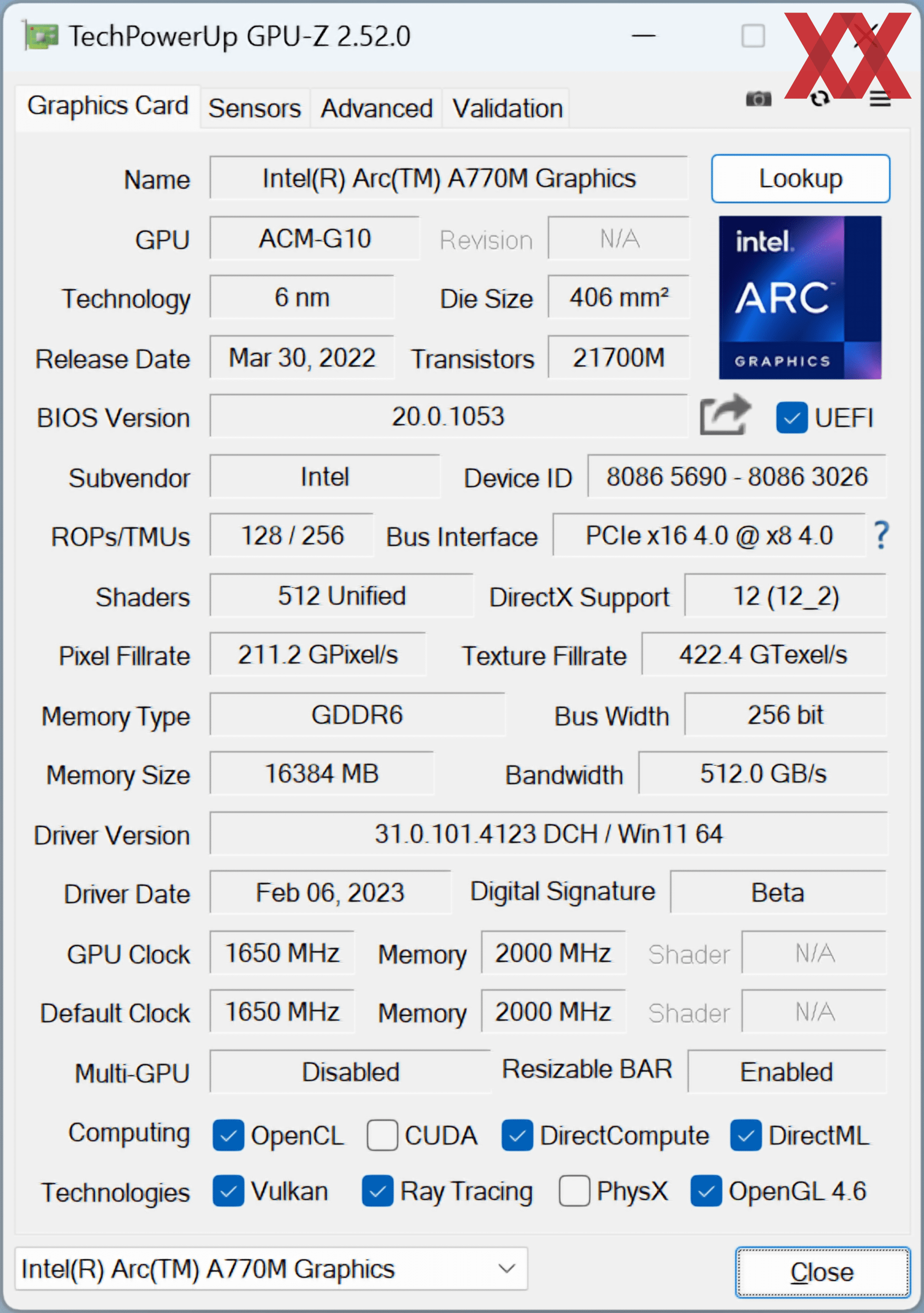 Что касается видеовыходов, Core i7-12700H оснащен встроенной графикой Iris Xe Graphics, которую можно вывести через порты наружу, как и в случае Arc A770M.