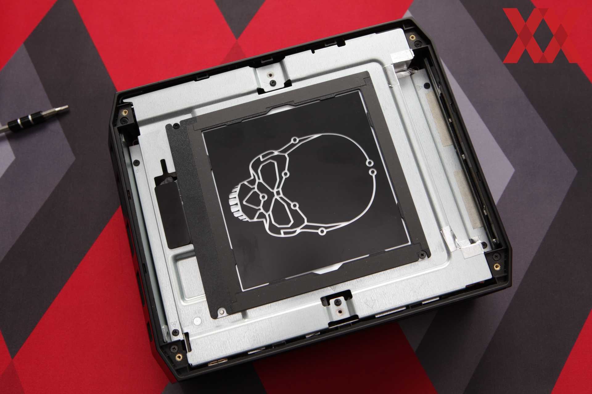 Before you get to the SSD and RAM slots, Intel has an LED panel where you can slot in custom decals. The panel is just a big RGB light that you can control with software, so you’re free to slot in anything that can block some light for a unique design. It’s a gimmick but still a cool piece of flare nonetheless.
