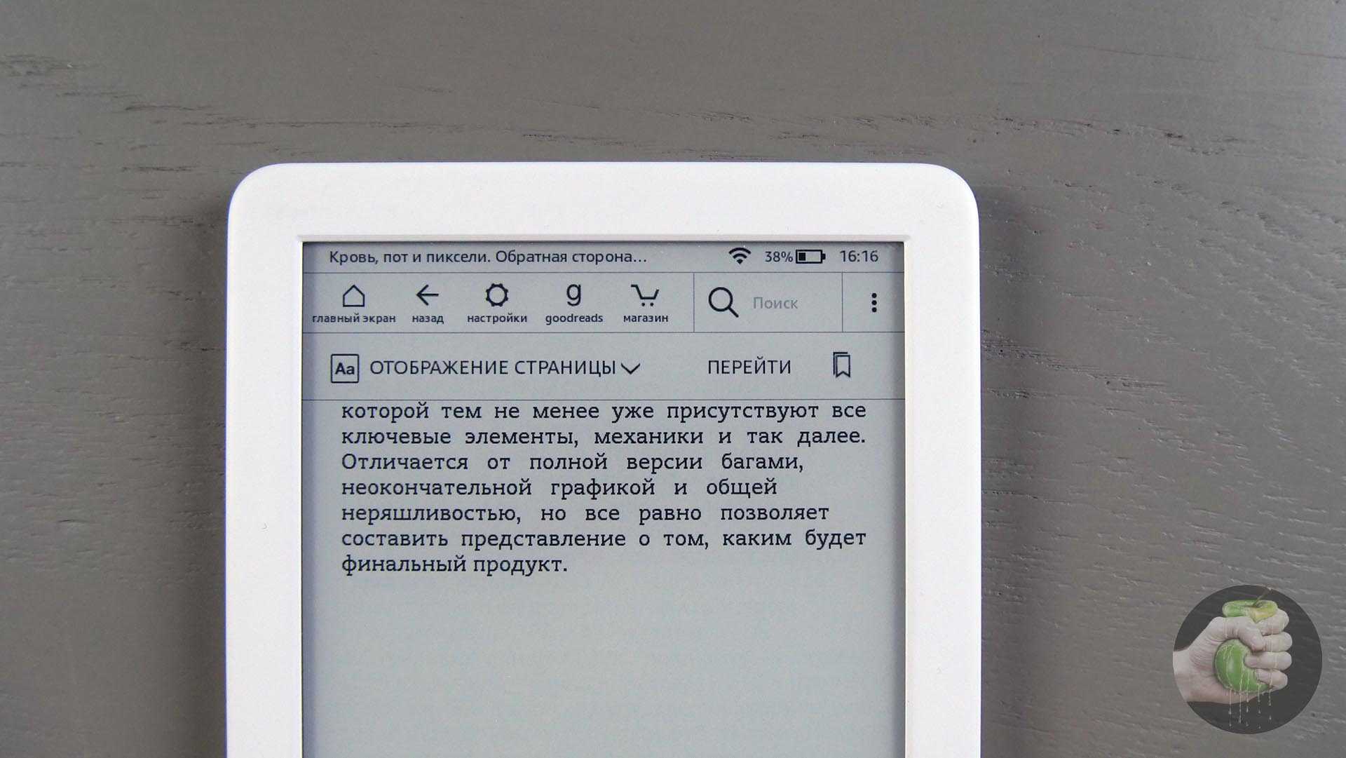 Перелистывать страницы легко, а интуитивно понятные жесты для комментирования и выделения текста имитируют опыт чтения в печати. Жесты смахивания лучше всего работают на этом электронном ридере. Я обнаружил, что движения при постукивании намного менее отзывчивы и заставляют экран мигать при каждом нажатии.