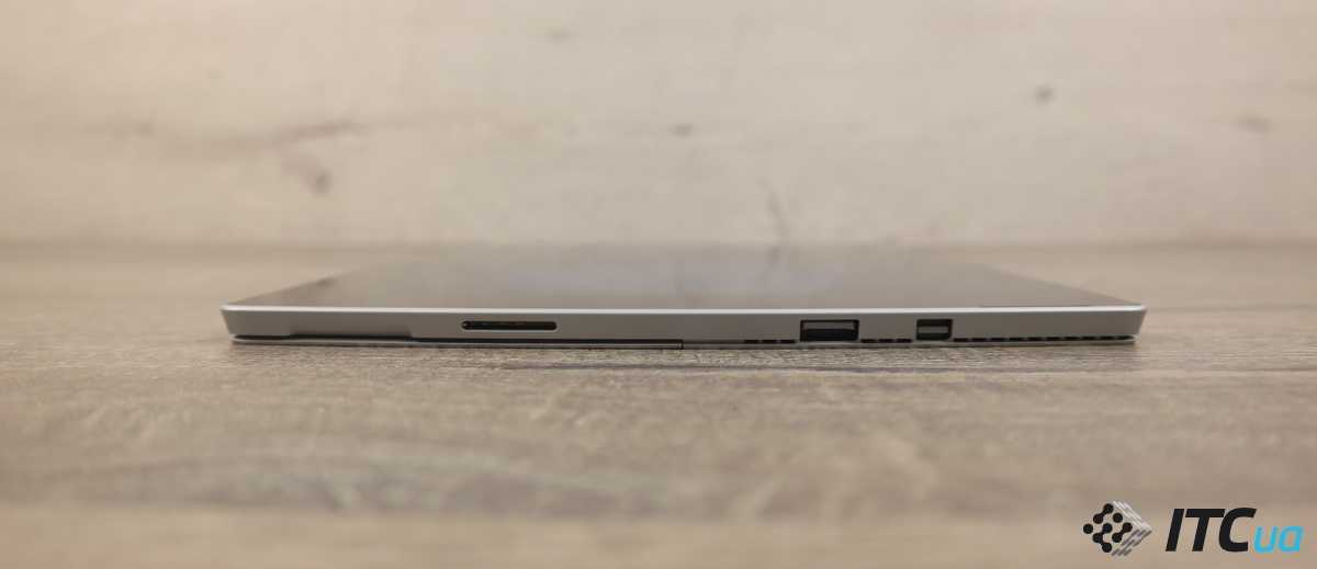 Как и ожидаешь от планшета, на корпусе Surface Pro 4 нет большого количества разъёмов, но Microsoft всё-таки нашла место для порта USB 3.0 и Mini DisplayPort на правом боку корпуса. Там же расположен фирменный магнитный разъём для зарядки.