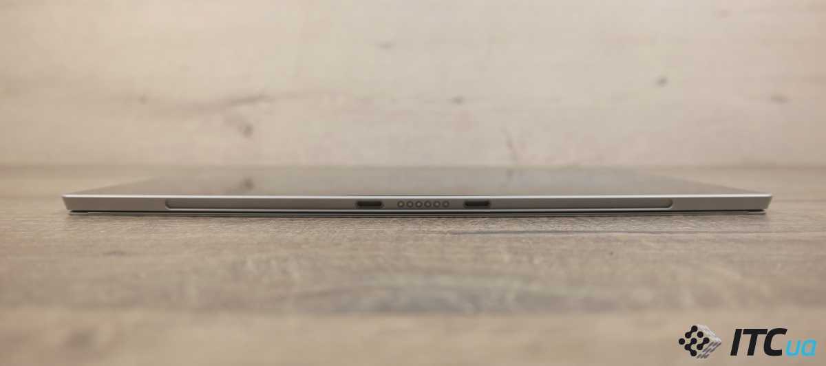 На нижней грани расположен магнитный коннектор для подключения клавиатуры.