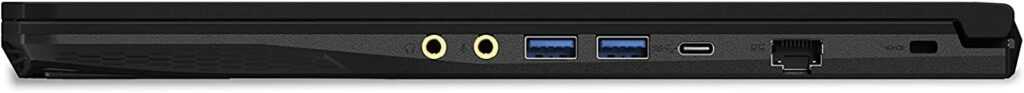 There’s no media card reader and we’re not surprised to see the lack of Thunderbolt on a budget gaming laptop. For wireless, you get an Intel AX201 card that supports only Wi-Fi 6, not the newer Wi-Fi 6E. It also supports Bluetooth 5.1.