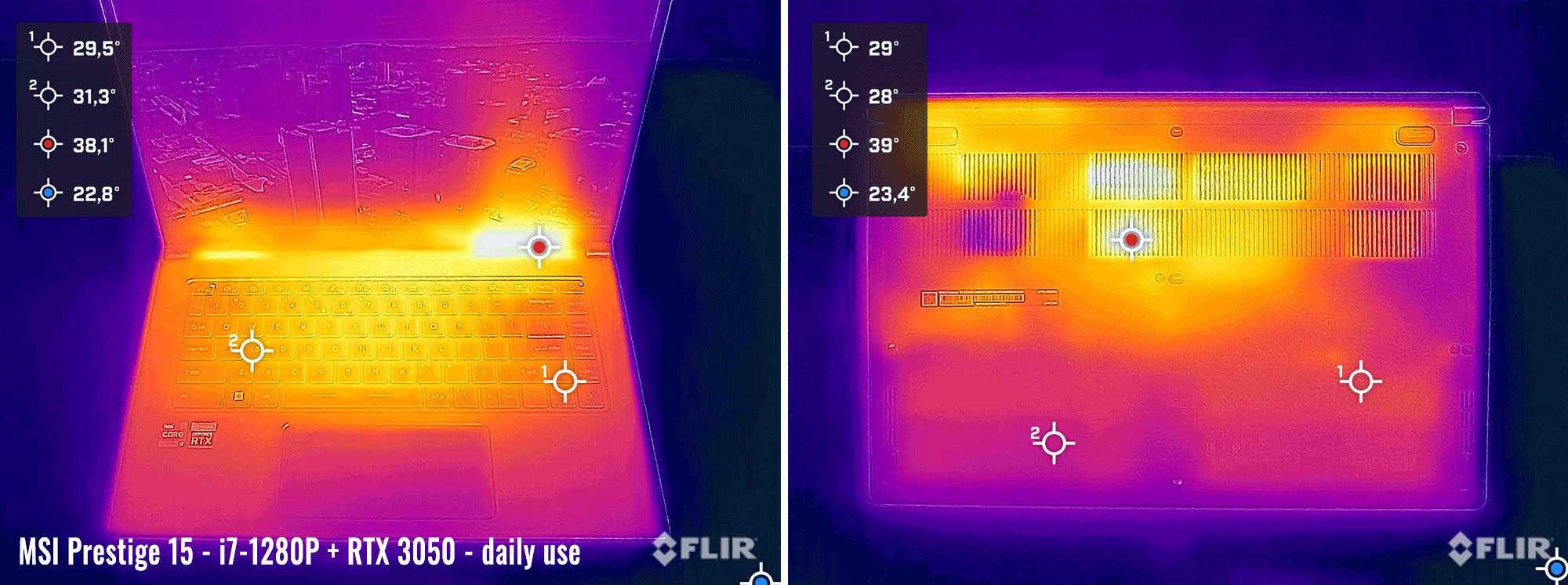 Repasting the CPU might help here, as well as somehow limiting the allocated power in demanding loads, but I’m not sure that’s possible in any way. At this point, I can’t tell whether the same kind of power is applied to the i5-1240P and i7-1260P configurations of this laptop or whether those processors are able to run at lower power and thus, reduced heat. This is something to look for in other reviews of the Prestige 15 series.