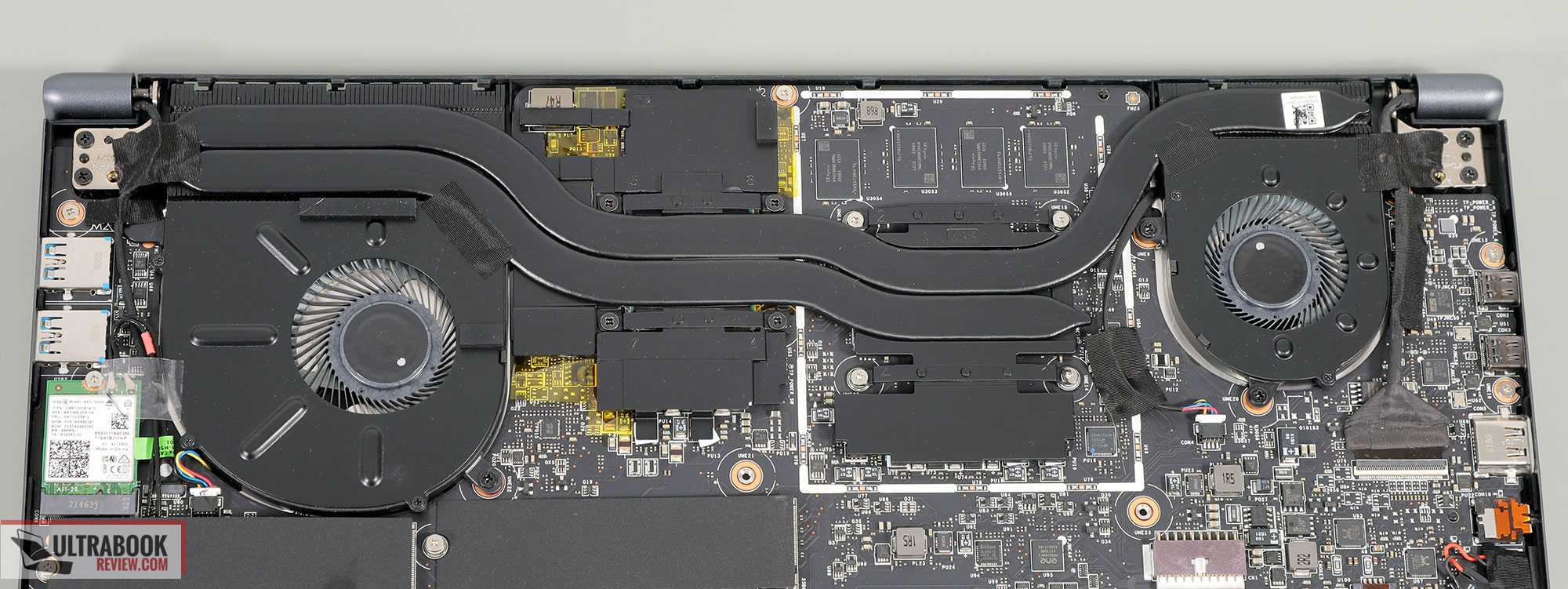 MSI went with a peculiar thermal design on this Prestige 15, by opting for a smaller radiator and fan on the CPU side.