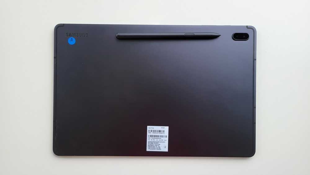 На задней крышке планшета находится магнитная система, предназначенная для хранения стилуса S Pen. Чтобы установить его правильно, нужно направить его кончик на фотомодуль. Когда планшет лежит горизонтально, стилус, «прилипший» к его задней части, может служить в качестве небольшой опоры для наклона экрана вверх. Его также можно прикрепить и на боковые грани, но при этом нужно потратить немного времени, чтобы найти нужное место. Да и пользоваться планшетом таким образом не всегда удобно.