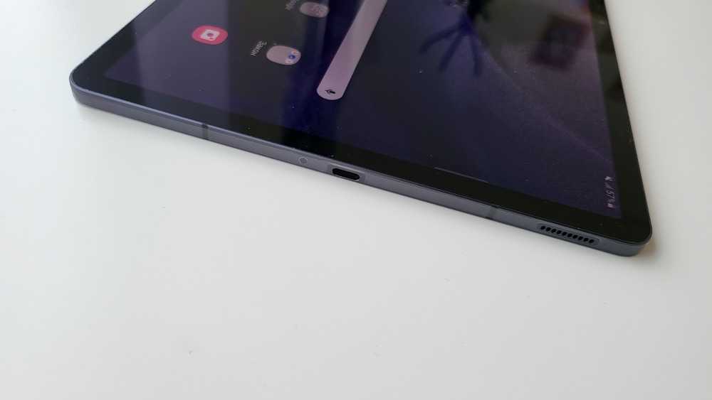 В нижнем торце имеется порт USB Type-C для зарядки планшета. Рядом с ним расположили решетку динамика, настроенного AKG.