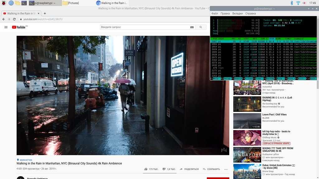 Мы попытались воспроизвести видео YouTube в разрешении 4K 60 кадров в секунду на Pi 400. Даже при разрешении 1080p пропало много кадров.