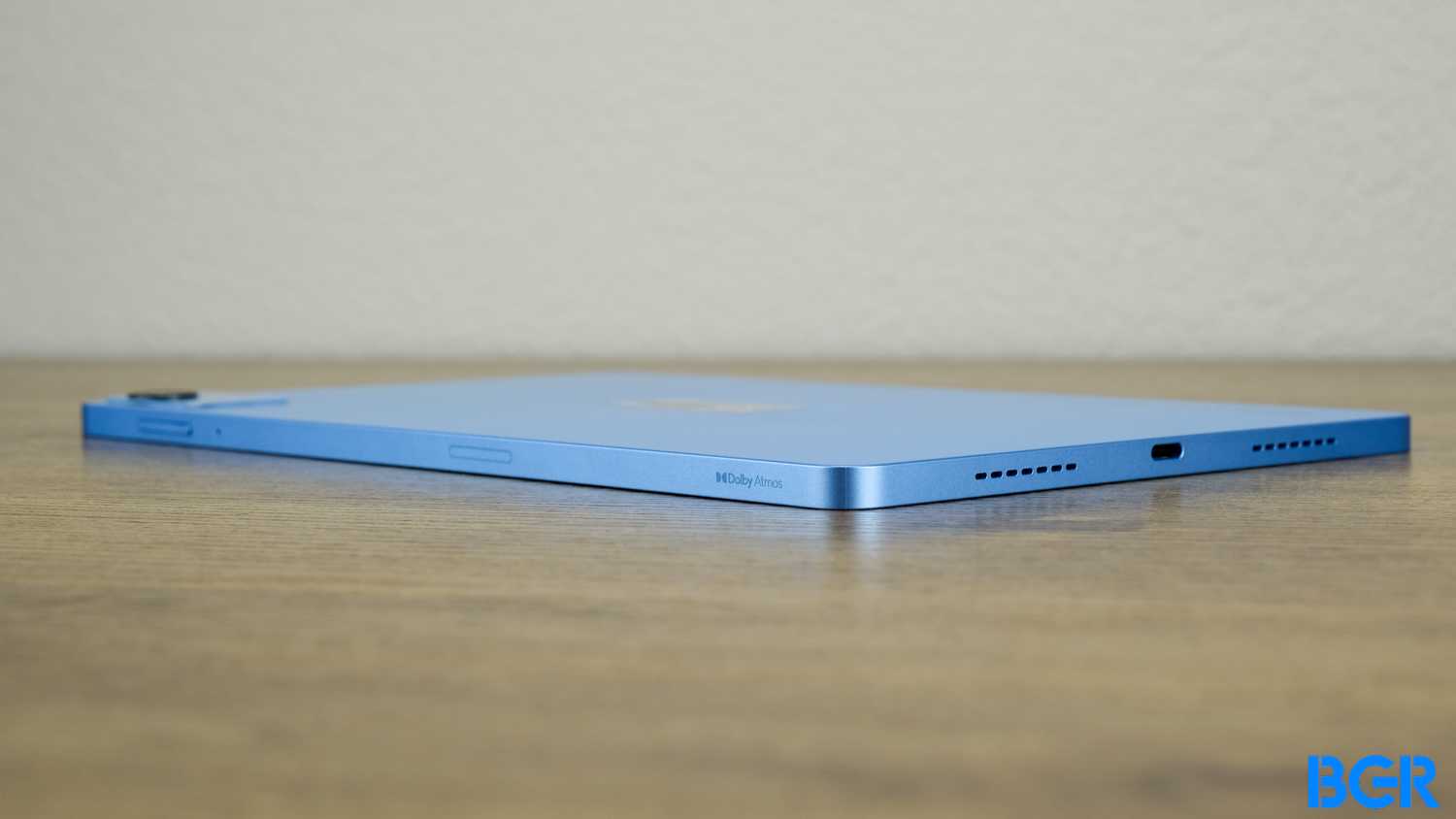 As mentioned, the design of the Realme Pad X is heavily inspired by the iPad Air. It offers the same squared-off edges, and while it doesn’t come in as many color options, you can get it in a nice light blue that’s reminiscent of the blue option for the iPad Air. When held vertically, you’ll get a volume rocker on the left edge, a power button on the top, and a USB-C port on the bottom. There’s no fingerprint sensor in that power button, but there is a super basic (and not very secure) facial recognition feature. I recommend sticking with a PIN code. On the back of the tablet, you’ll find a single camera sensor, and that’s about it.