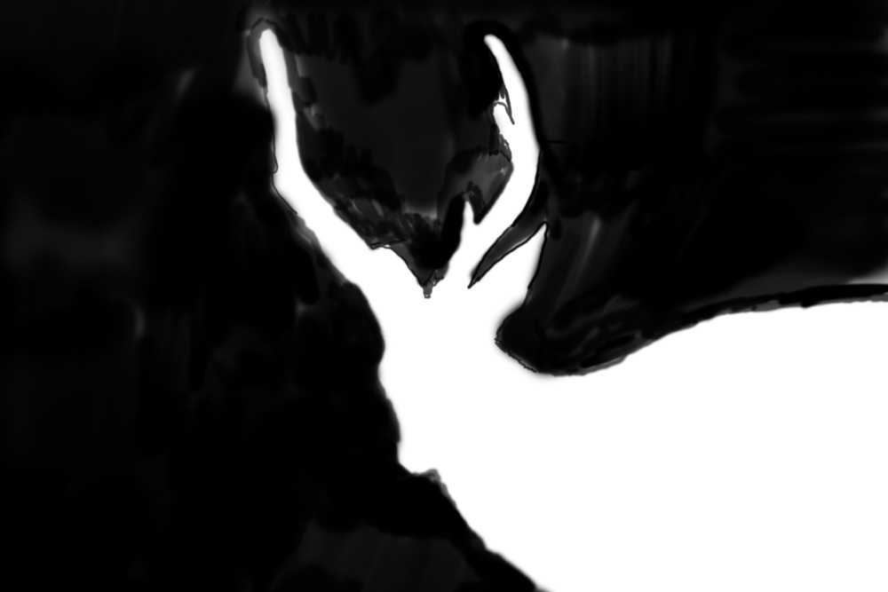 Маска нарисована обычной кистью вручную. Сначала кистью небольшого базового диаметра (базового потому, что размер изменяется от степени нажатия на перо) аккуратно прорисовываем контуры оленя, а потом уже более большой и мягкой кистью закрашиваем весь остальной фон.