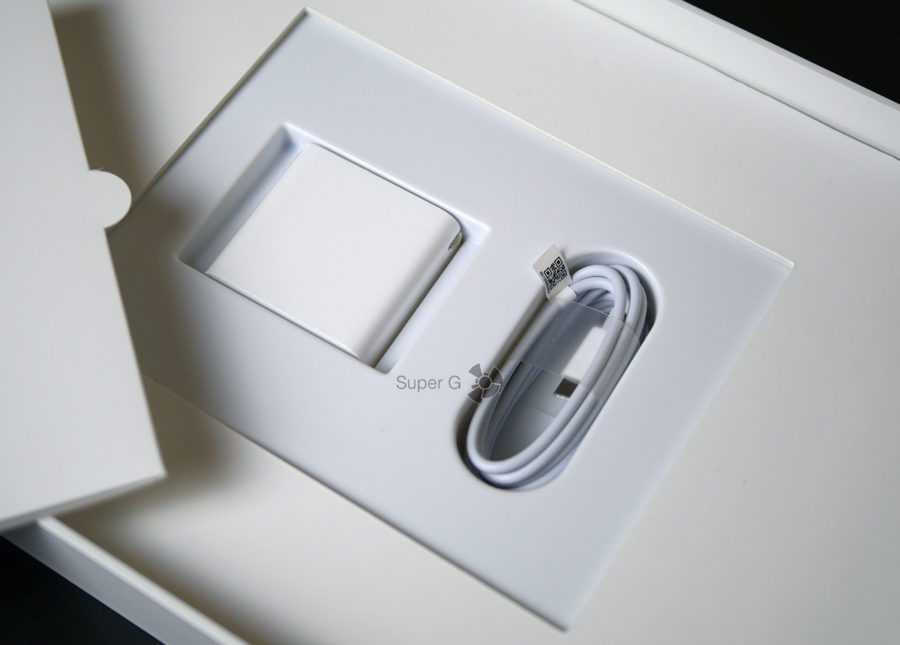 Под ноутбуком ним лежит аккуратный конверт с «быстрой инструкцией», а на уровне ниже находится блок питания с китайской вилкой и кабель (1,5 метра) с двусторонним USB C подключением.