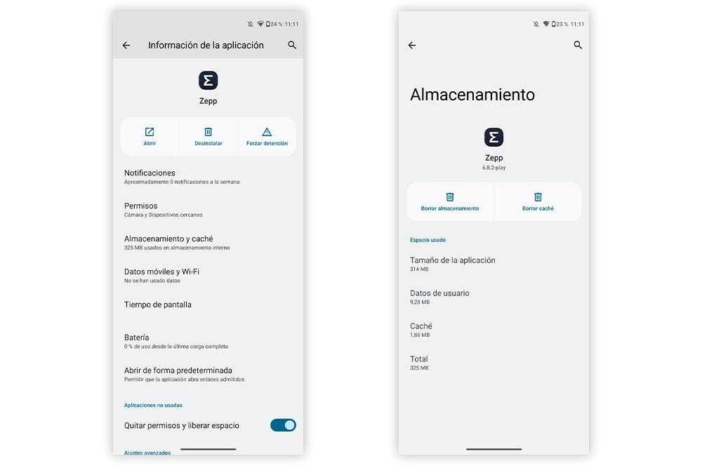 Если ошибка повторится, нам придется закрыть приложение, выключить и снова включить Bluetooth, перезапустить наши умные часы и снова попытаться синхронизировать часы. Кроме того, в качестве рекомендации мы можем удалить данные кеша самого приложения с нашего смартфона, выполнив следующие действия: