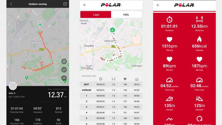 Run tracking compared: Amazfit GTR 2 (left and right) and Polar Vantage V2 (right)