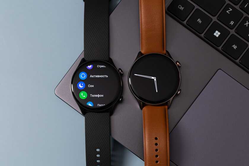 Если говорить о внешности и эргономике. Здесь также претензий нет, часы красиво смотрятся на запястье и практически не ощущаются на нём — не оттягивают руку. Если выбирать между цветами, мне больше понравилась версия с чёрным ремешком за универсальность. Я чаще хожу в свободной одежде, регулярно посещаю зал — строгие умные часы мне не нужны. Хотя замена ремешка не является проблемой, вместо коричневой кожи на второй версии можно подобрать что-то более подходящее.