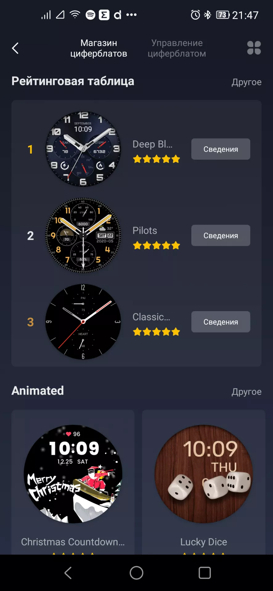 Amazfit GTR 2 управляются с помощью приложения Zepp, в котором аккумулируются все собранные часами данные. В приложении можно произвести точную настройку устройства и персонализировать его под свои вкусы. Например, в Zepp имеется магазин, в котором можно найти несколько десятков различных циферблатов. Они удобно разделены по группам: некоторые имитируют аналоговые часы, другие цифровые, а третьи созданы для максимальной информативности, чтобы отображать все пользовательские данные прямо на главном экране.