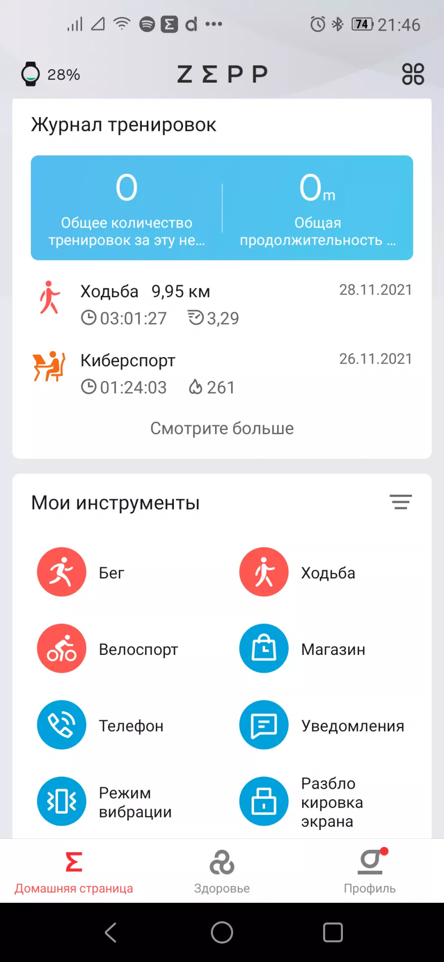 Мобильное приложение, я напомню, называется просто – Zepp. Как Zepp OS — операционная система, на которой работают данные часы, только без приписки «OS». Все, кто пользовался даже самыми простыми моделями умных часов, знают, что большинство считываемых часами параметров передаётся приложению и там представляется в удобной и наглядной форме в виде графиков, расписания активностей по периодам времени и так далее, что, к тому же, более наглядно смотрится на значительно более большом дисплее смартфона.