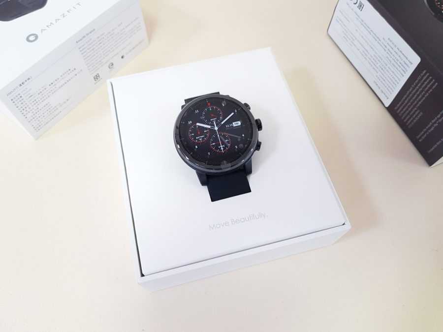 Стратос выпускаются в двух версиях, обе из которых пользуются спросом, – Стандарт и Премиум. Их функционал и комплектация не отличаются. Отличие только в материалах. Стандартная версия часов продается в белой картонной коробке, дизайн которой не имеет ничего лишнего. На упаковке присутствует логотип Amazfit и основная информация о часах. Сам аксессуар находится на картонном подиуме.