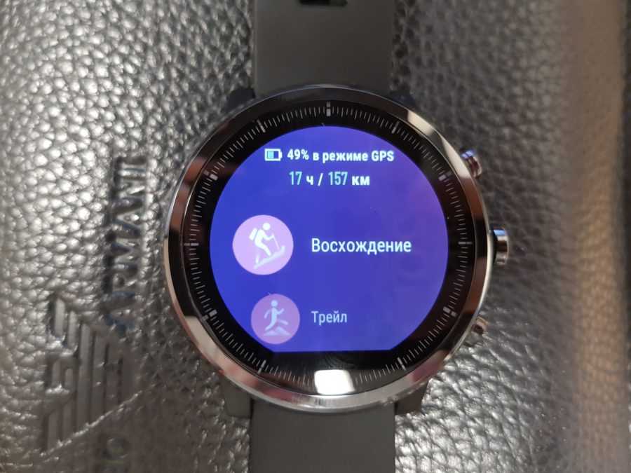 В отличие от родственных Amazfit GTR с их AMOLED-дисплеем, здесь экран выполнен по технологии reflective low-power color display. Особенность трансфлективного дисплея в том, что чем ярче окружающее освещение, тем четче выглядит изображение на нем.