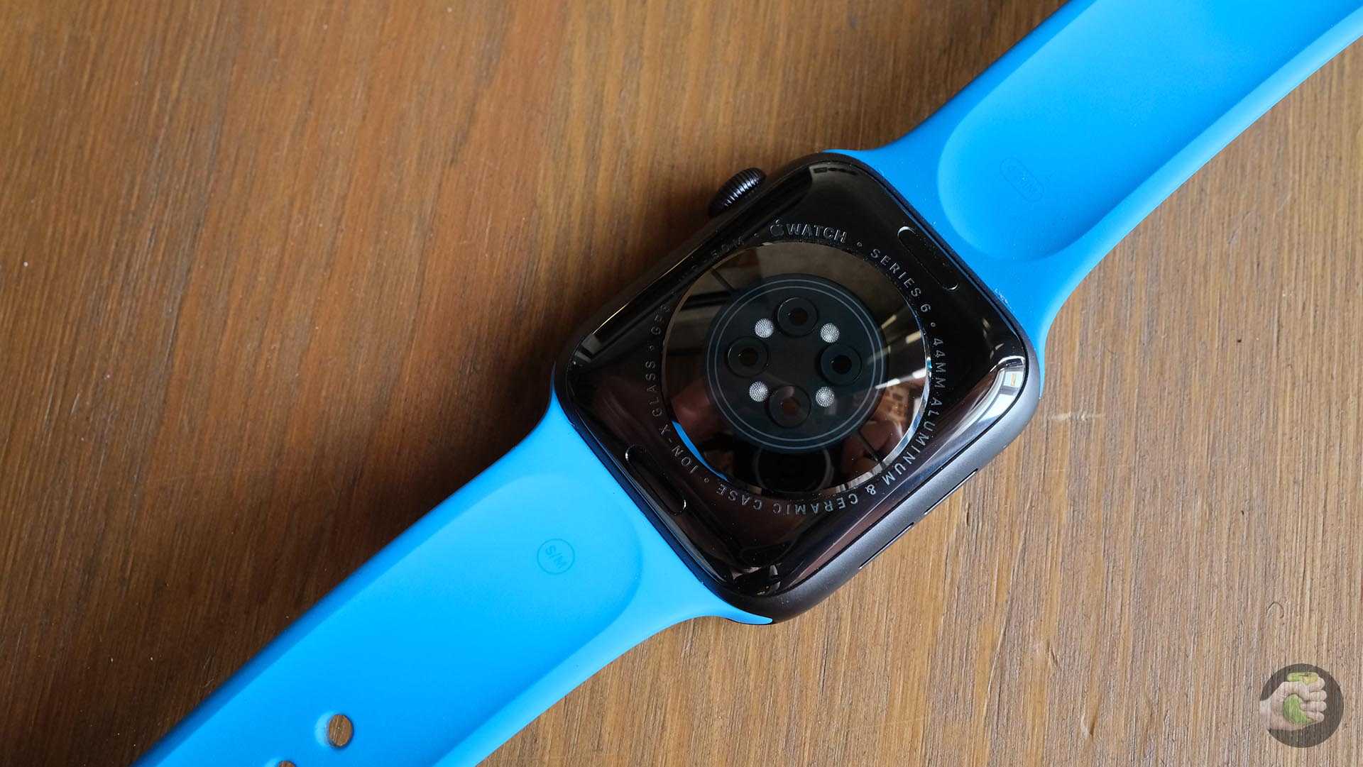 Основные оптические датчики Apple Watch Series 6. Фото: Илья Кичаев / Wylsacom Media